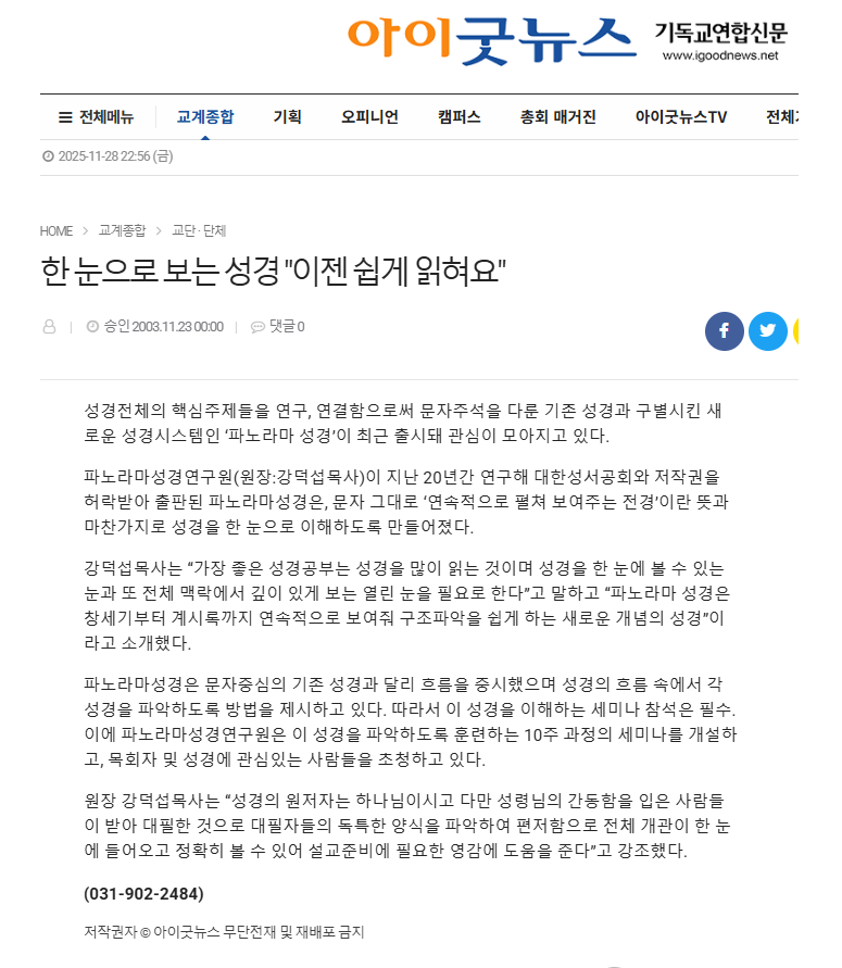 ◆ 한눈에 보는 성경(기독교연합신문) > 보도광장