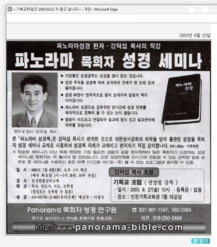 목회자들이 극찬한! 목회자의 필수코스! (목회자 성경 세미나 1순위) - 파/노/라/마/성/경