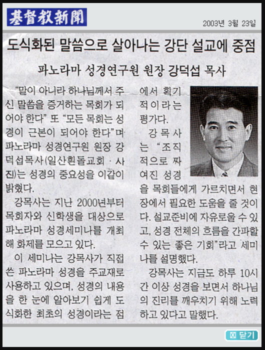 ◆ 성령의 검 곧 하나님의 말씀을 준비하는 - 파/노/라/마/성/경/세/미/나