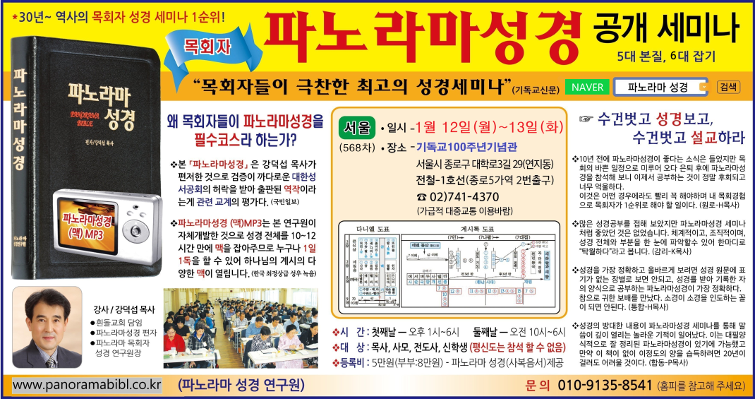 ※ 30년~ 역사 : 목회자 성경세미나 1순위! (국민일보)